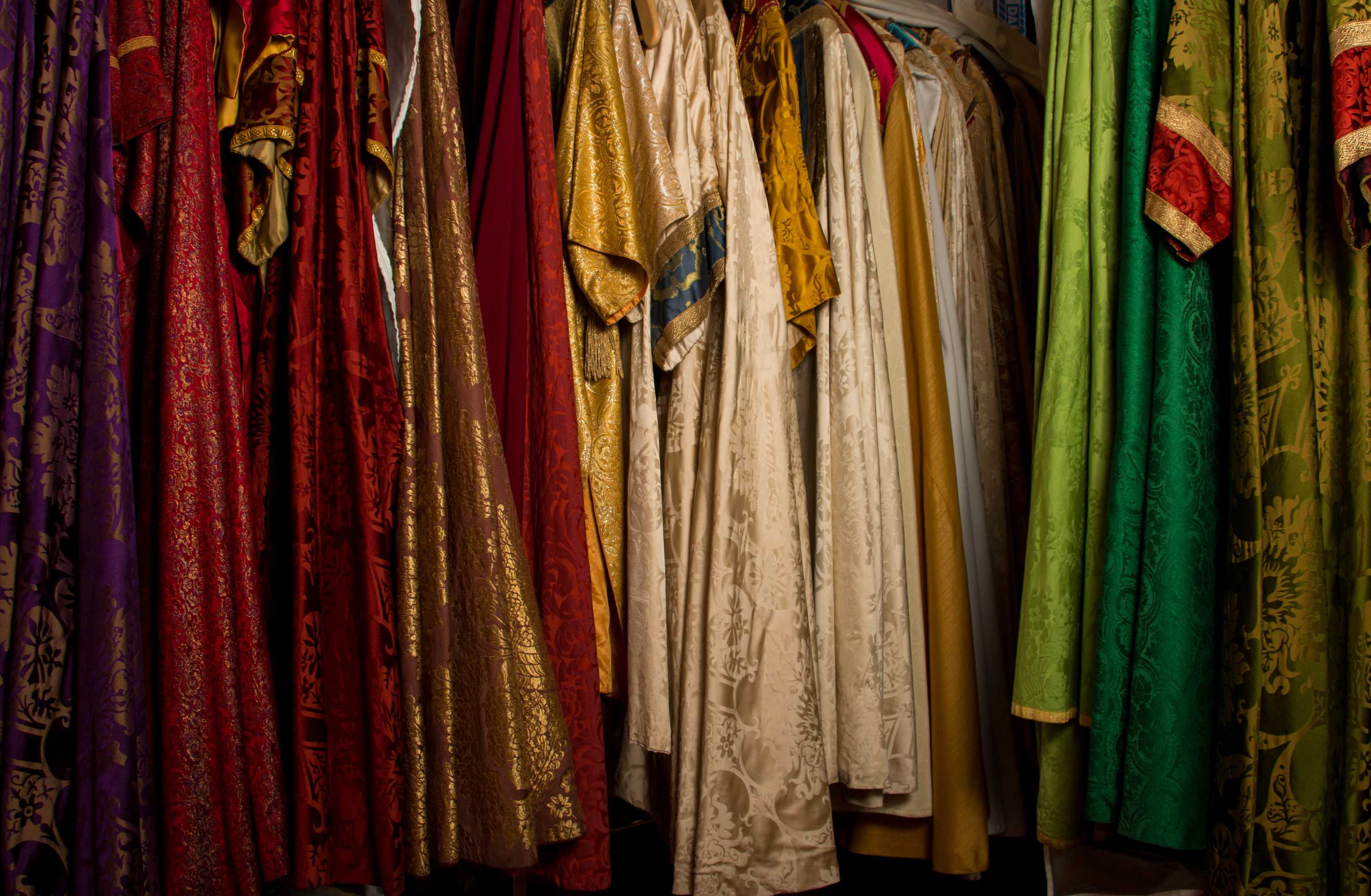 Decorated with embroidery, fringing and detailed beading, copes are made in a diversity of hues to represent different stages of the liturgical calendar.